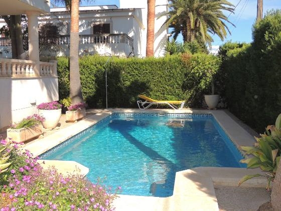 Grote en comfortabele villa met privé zwembad in Cala Blava, op Mallorca, Spanje voor 10 personen. De villa ligt in een residentiële kustomgeving en op 3 km van het strand van Cala Blava.