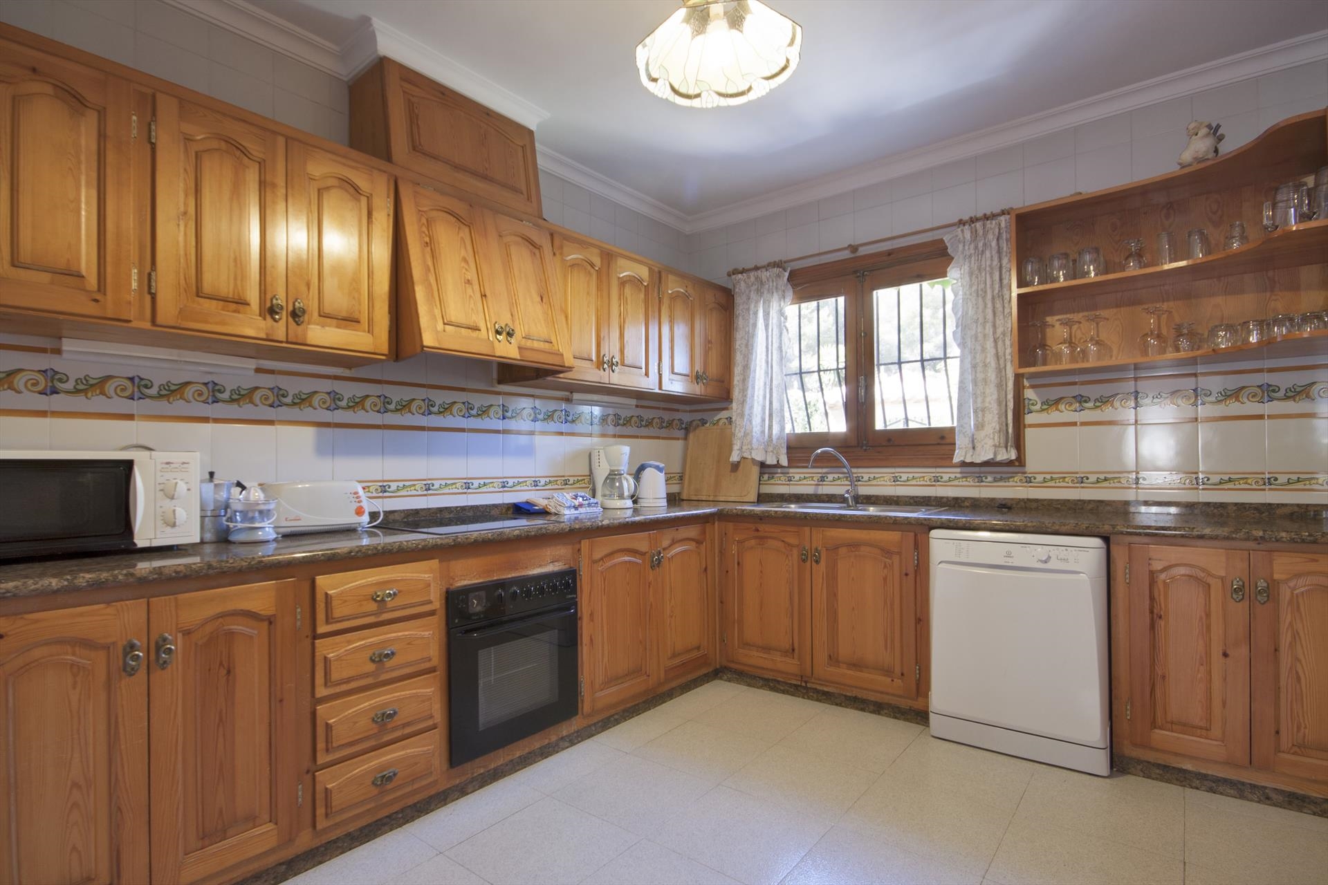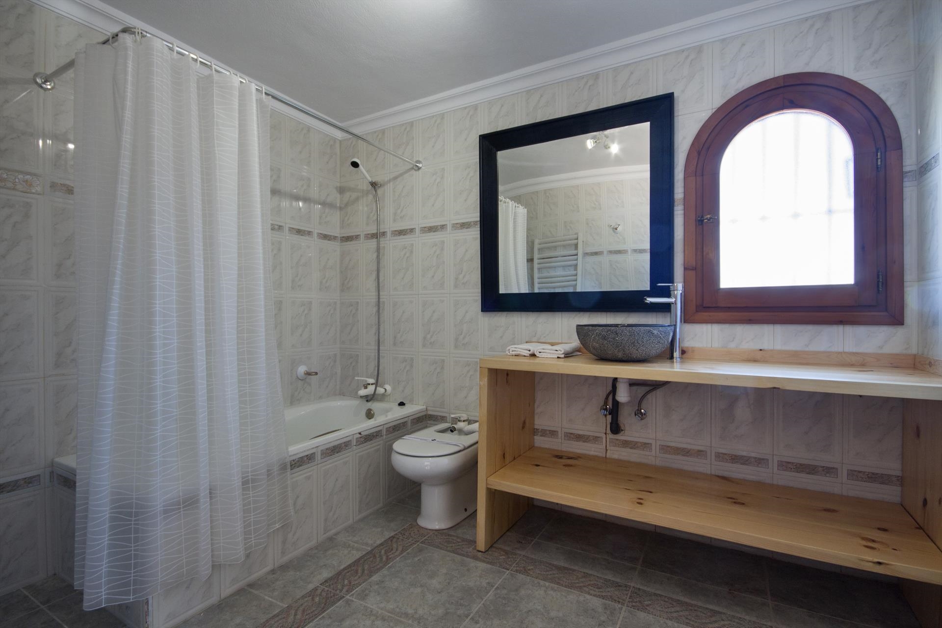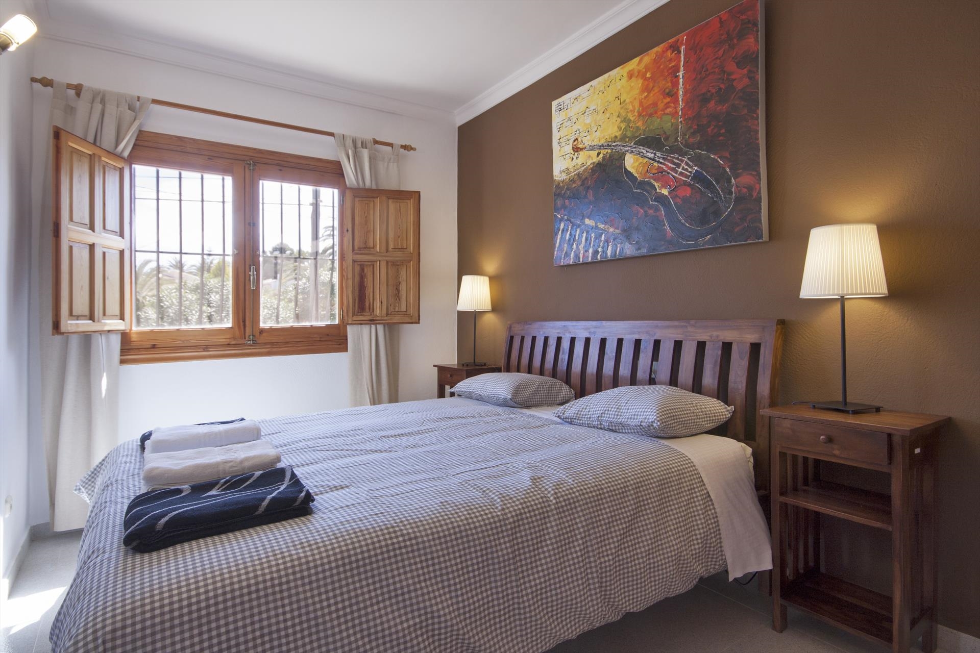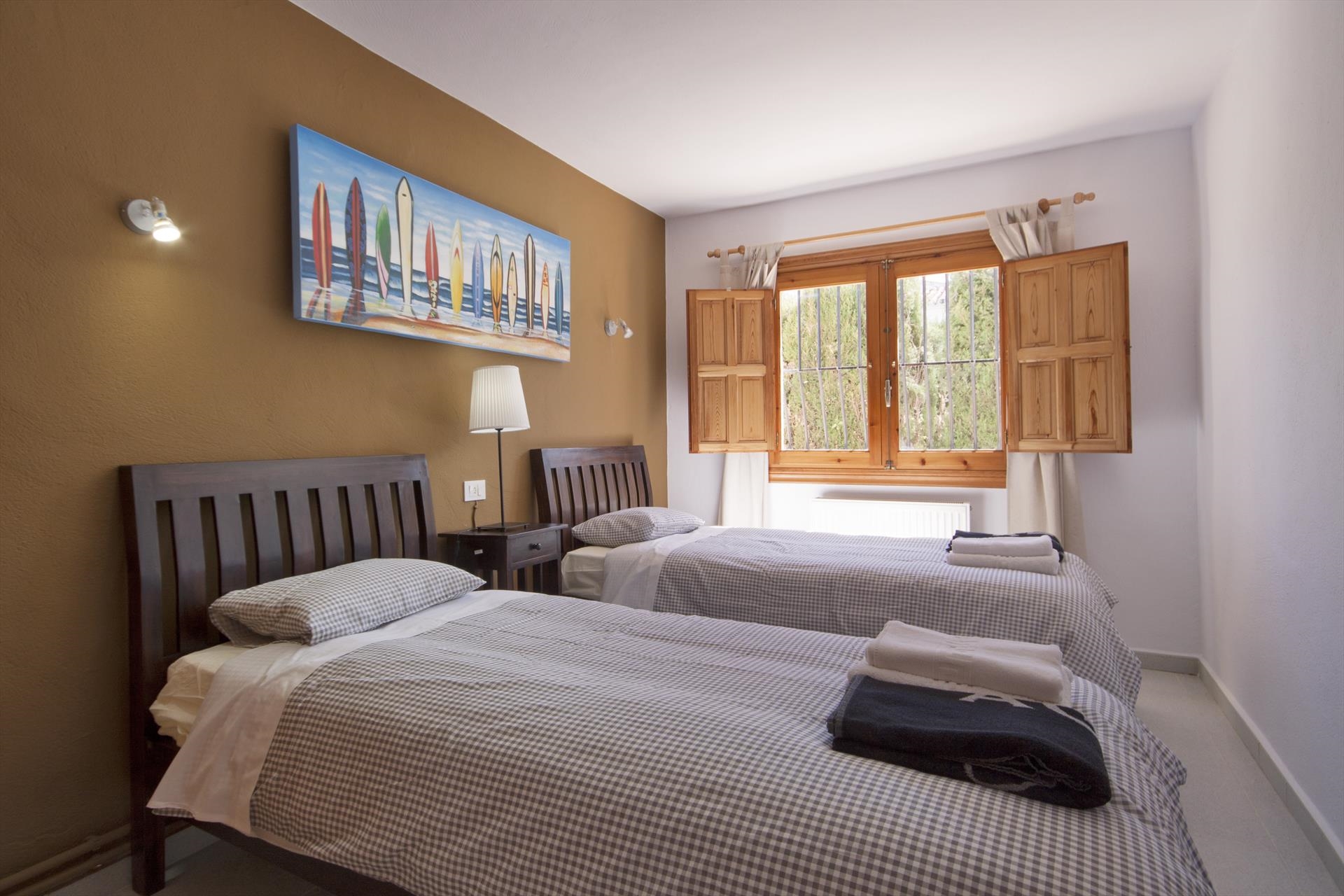 Grote en comfortabele villa met privé zwembad in Javea, aan de Costa Blanca, Spanje voor 16 personen. De villa ligt in een heuvelachtige en residentiële kustomgeving en op 2 km van het strand van El Arenal, Javea.