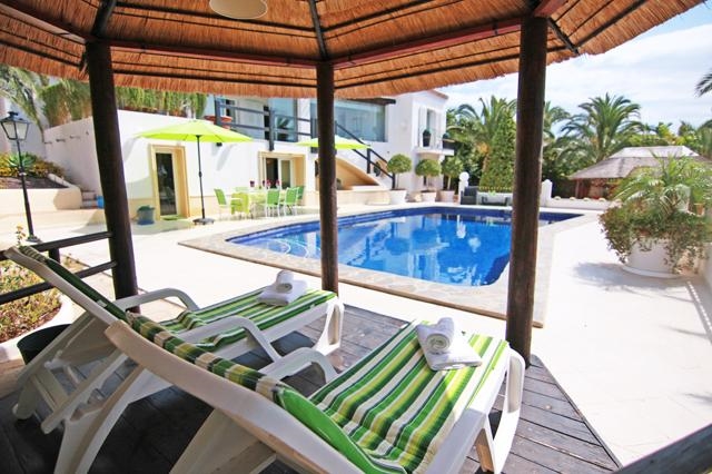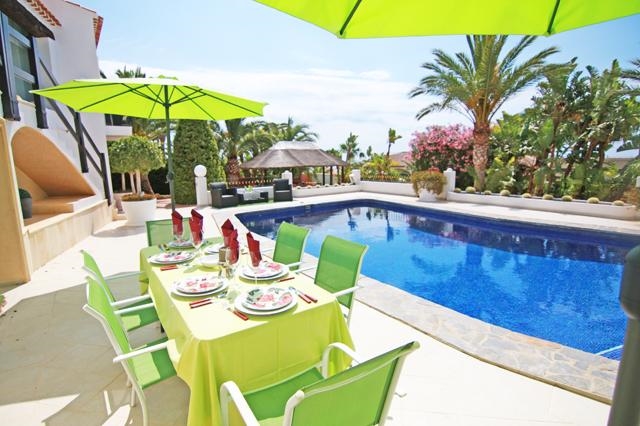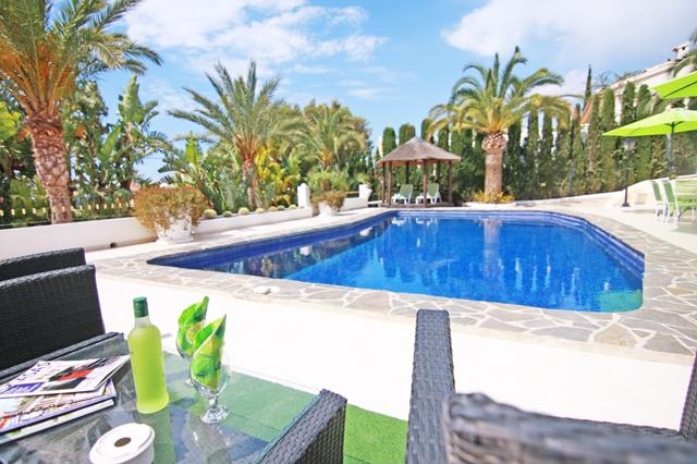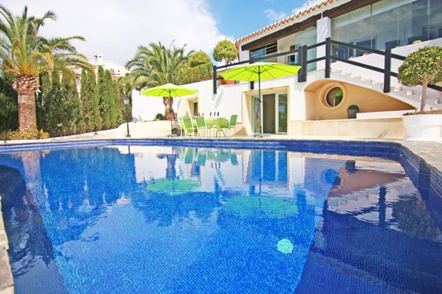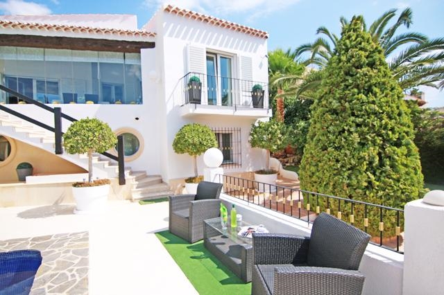 Prachtige en luxe villa in Benissa, aan de Costa Blanca, Spanje met privé zwembad voor 6 personen. De villa ligt in een heuvelachtige, bosrijke en residentiële omgeving en op 2 km van het strand van Platjetes.