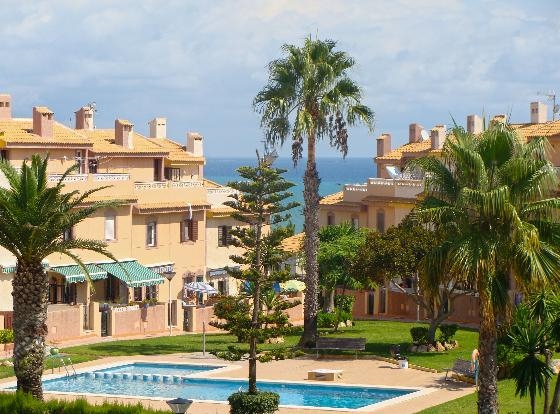 Vakantiehuis in Torrevieja, aan de Costa Blanca, Spanje met gemeenschappelijk zwembad voor 6 personen. Het vakantiehuis ligt dichtbij restaurants en bars en supermarkten en op 1 km van het strand van La Mata.