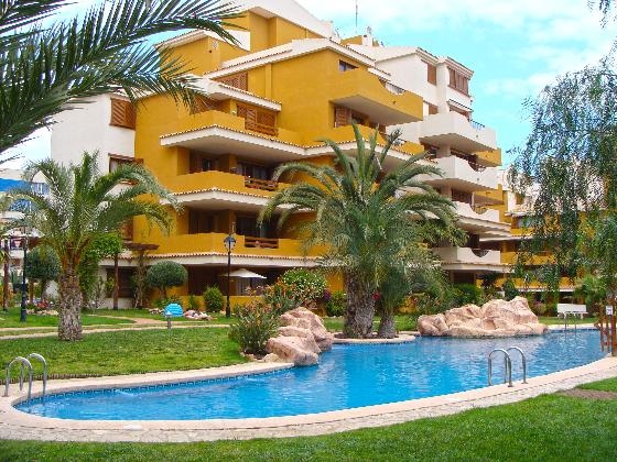 Comfortabel appartement met gemeenschappelijk zwembad, in Punta Prima, Costa Blanca, Spanje voor maximaal 4 personen.