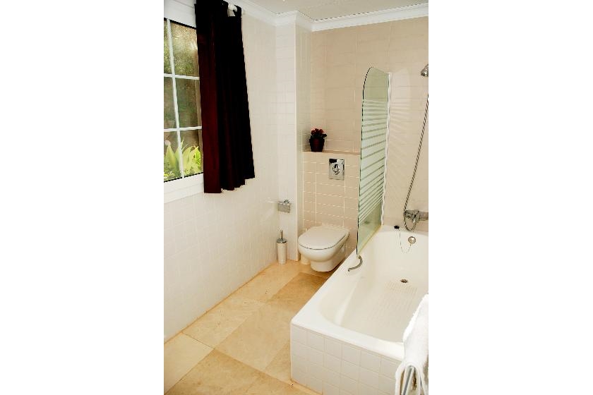 Deze vakantiewoning ligt in een heuvelachtige en residentiƫle omgeving en dichtbij restaurants en bars, winkels, supermarkten en een tennisbaan. De accommodatie biedt privacy, een tuin met gazon en bomen en prachtig uitzicht op de baai, de golfbaan, de zee, het dal en de bergen.