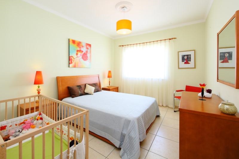 1. Slaapkamer: 2-pers. bed (140 cm breed), babybed, air-conditioning.