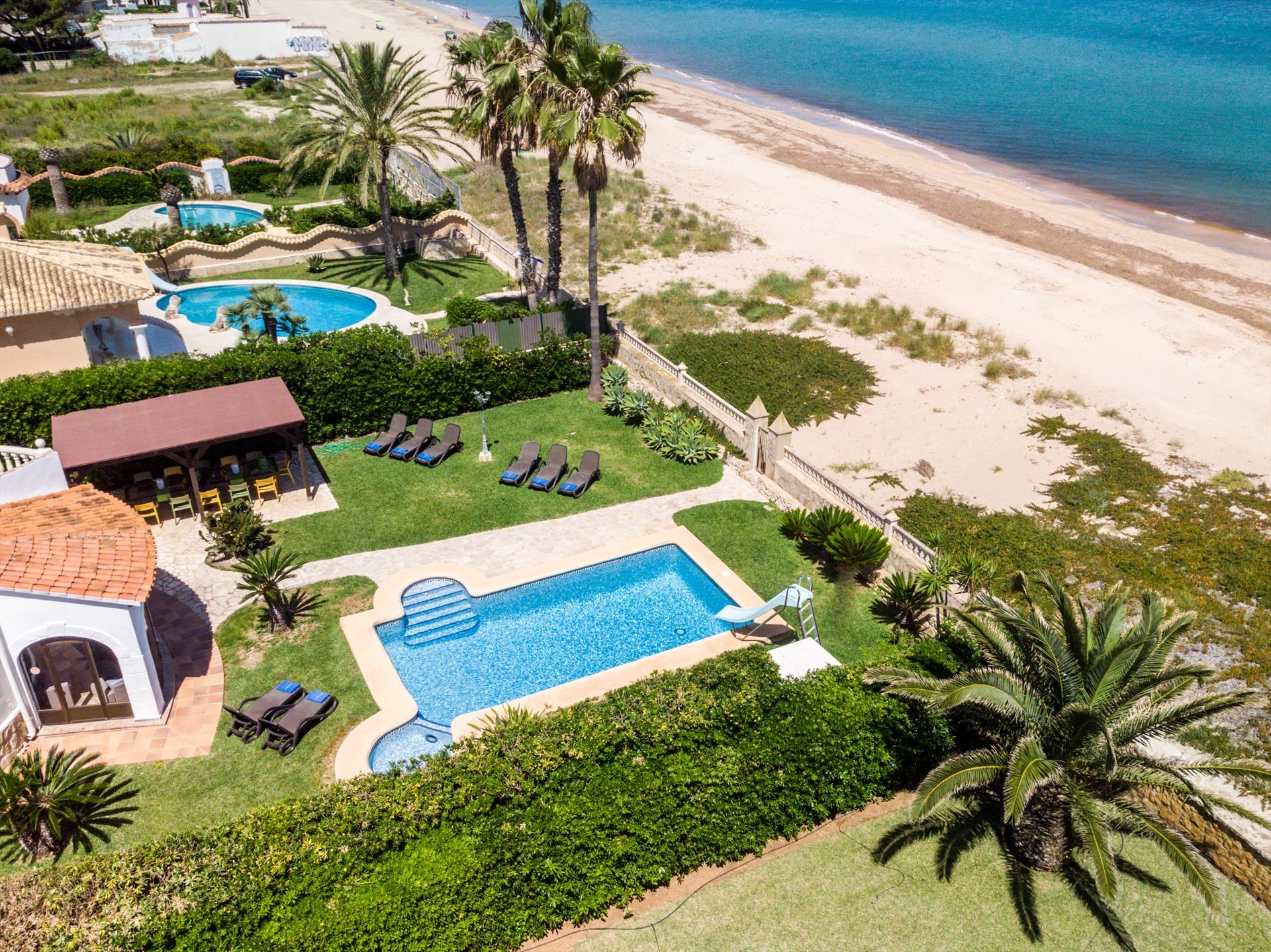 Een unieke vakantievilla en Denia - Els Poblets, met directe toegang naar het strand Las Marinas. Op deze strand strook zijn er maar 5 huizen met directe toegang naar het strand, waardoor dit een heel bijzonder huis is. Vanaf de woonkamer heeft u directe toegang naar de tuin met privé-zwembad en vanaf daar komt u, door een kleine poort, direct op het strand uit.